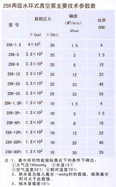 2SK系列兩級(jí)水環(huán)式真空泵和2SK—?jiǎng)傁盗袃杉?jí)水環(huán)真空泵一大氣噴射泵機(jī)組被用來(lái)抽吸空氣和其它無(wú)腐蝕性、不溶于水、允許含有少量固體顆粒的氣體以便在密閉容器中獲得較高真空。